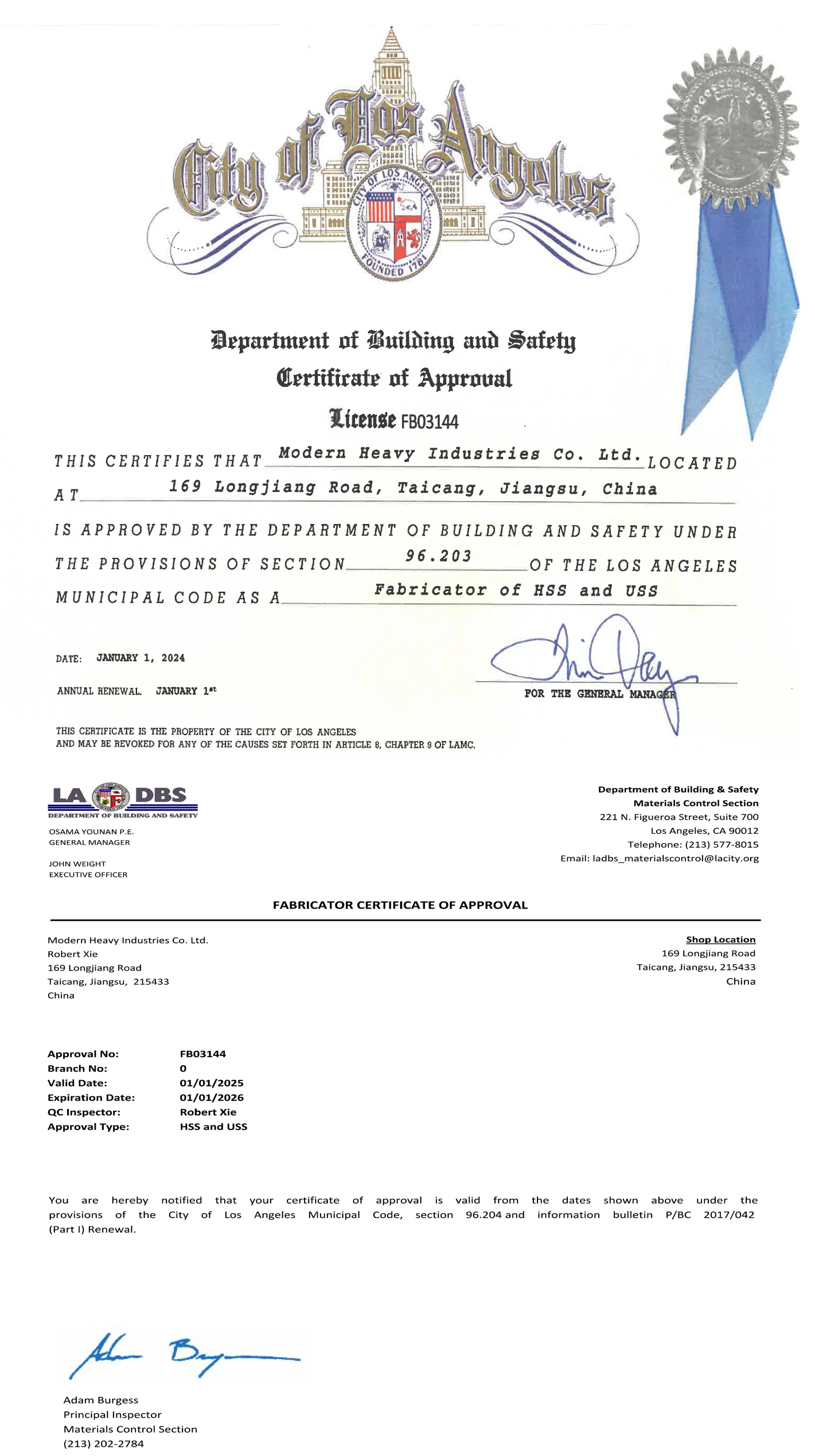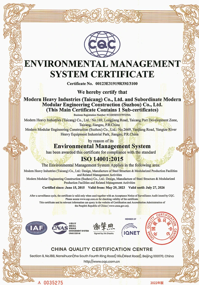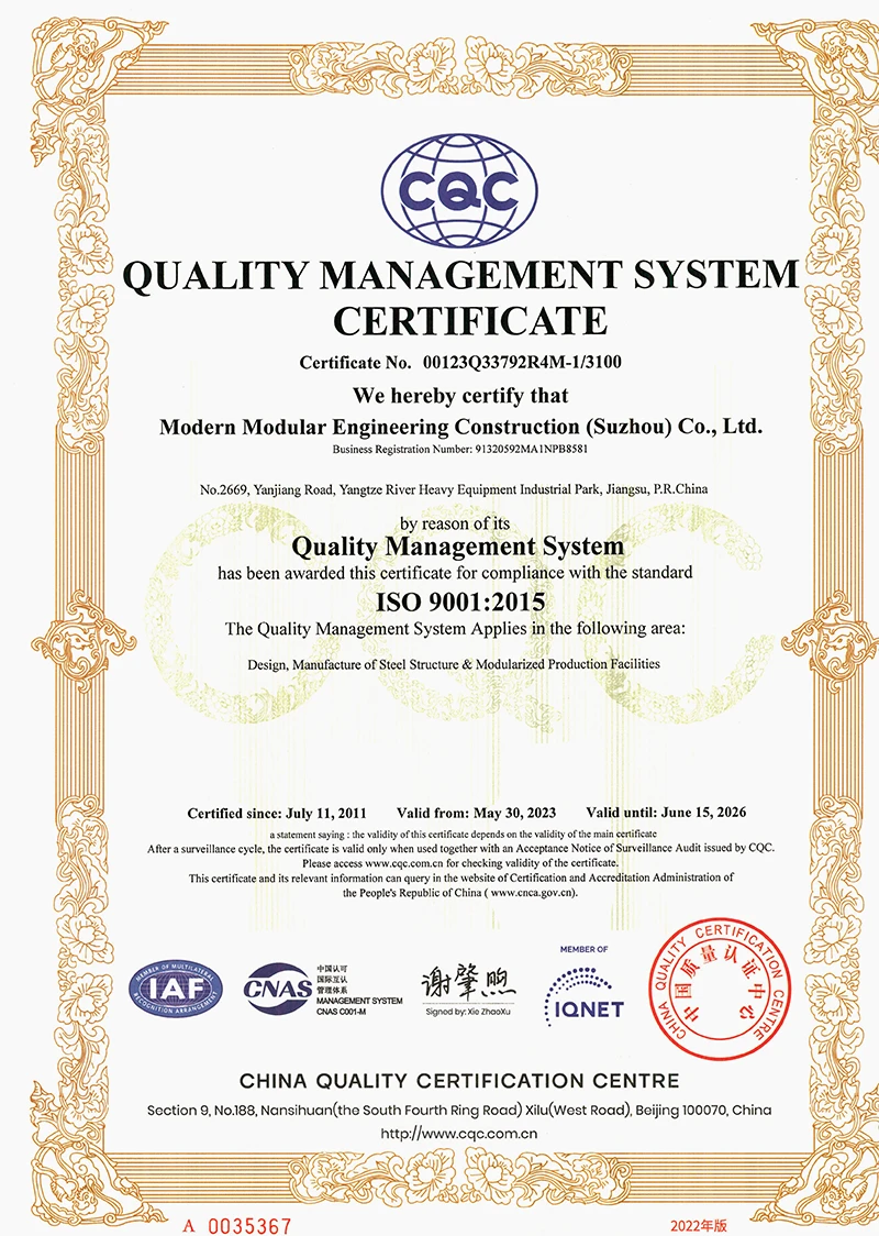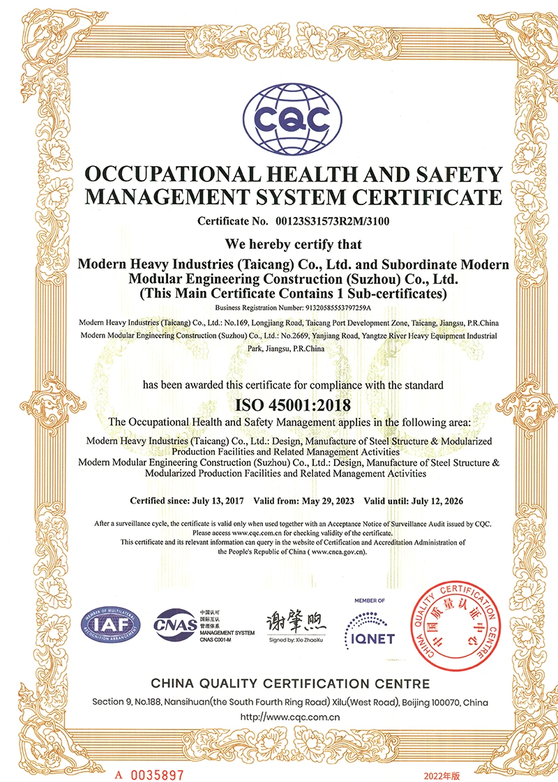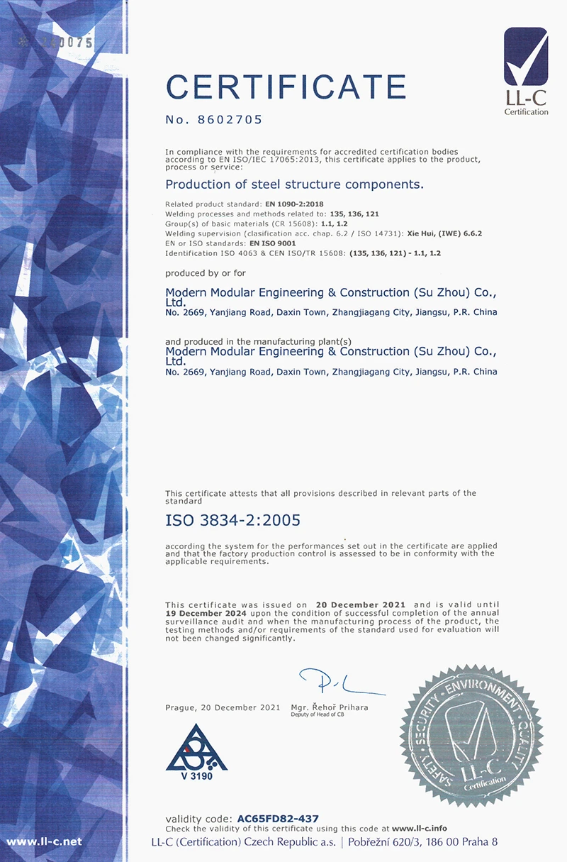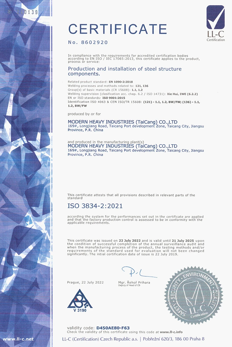 Modern Group workshops maintain a range of certifications to demonstrate compliance with international quality standards for the structural steel industry. Our workforce must be competent and possess the knowledge, skill, organization, experience, procedures, equipment, and dedication to quality to perform fabrication, erection, and modular construction per company certifications.